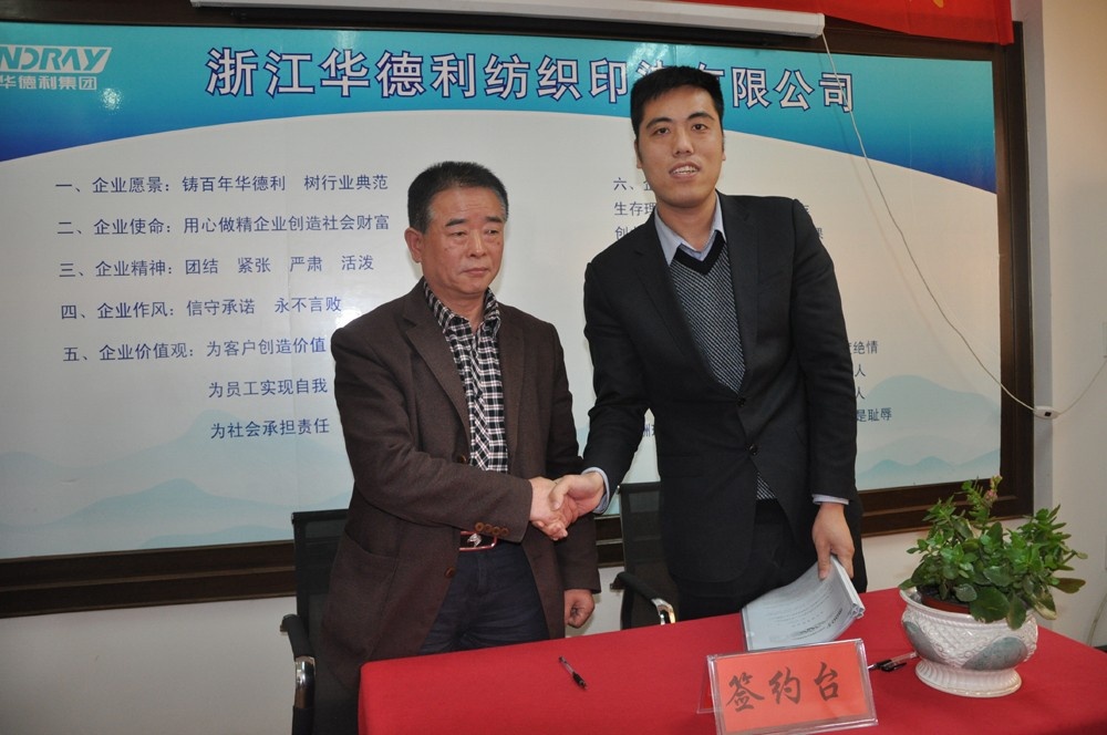 2015年3月24日,浙江華德利紡織印染有限公司與方正證券新三板簽約儀式在華德利控股集團正式啟動。華德利通過幾十年的積累,目前已成為海寧印染行業(yè)中的翹楚,企業(yè)在運營、技術(shù)等方面都取得了較好的成績。企業(yè)積極籌備上市工作,期望在不久的將來成為海寧市許村第一個以印染行業(yè)進入新三板的公司。